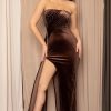 - High slit on the thigh, hip-wrapped maxi dress, shows skinny long legs, women curves, sophisticated femininity, makes a wonderful match to high heels.